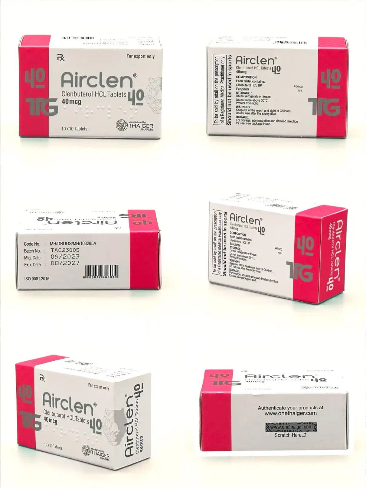 کلنبوتِرول Airclen 40 از شرکت Thaiger Pharma، دارویی بر پایه Clenbuterol HCl است که بهطور اصلی برای باز کردن مجاری تنفسی و بهبود عملکرد ریه به کار میرود. این محصول با افزایش متابولیسم و ترموژنز، به چربیسوزی و کاهش وزن کمک میکند و در بدنسازی نیز برای افزایش استقامت و توان ورزشی کاربرد دارد. مصرف آن میتواند برای افرادی با مشکلات تنفسی یا ورزشکارانی که به دنبال کاهش توده چربی و بهبود کارایی ورزشی هستند مفید باشد، البته فقط تحت نظر پزشک یا متخصص.