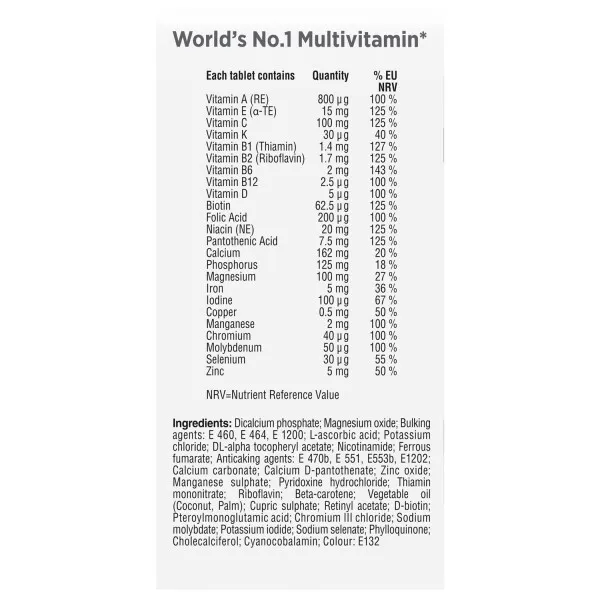 فرمولاسیون پیشرفته این محصول حاوی ۲۴ ریزمغذی ضروری است که به حفظ انرژی، تقویت سیستم ایمنی، سلامت پوست، چشم، گوارش و عملکرد متابولیکی کمک میکنند. همچنین قرصهای مولتی ویتامین سنتروم ادونس بزرگسالان دارای روکش نرم و بلع آسان هستند و برای مصرف روزانه خانمها و آقایان ایدهآلاند.