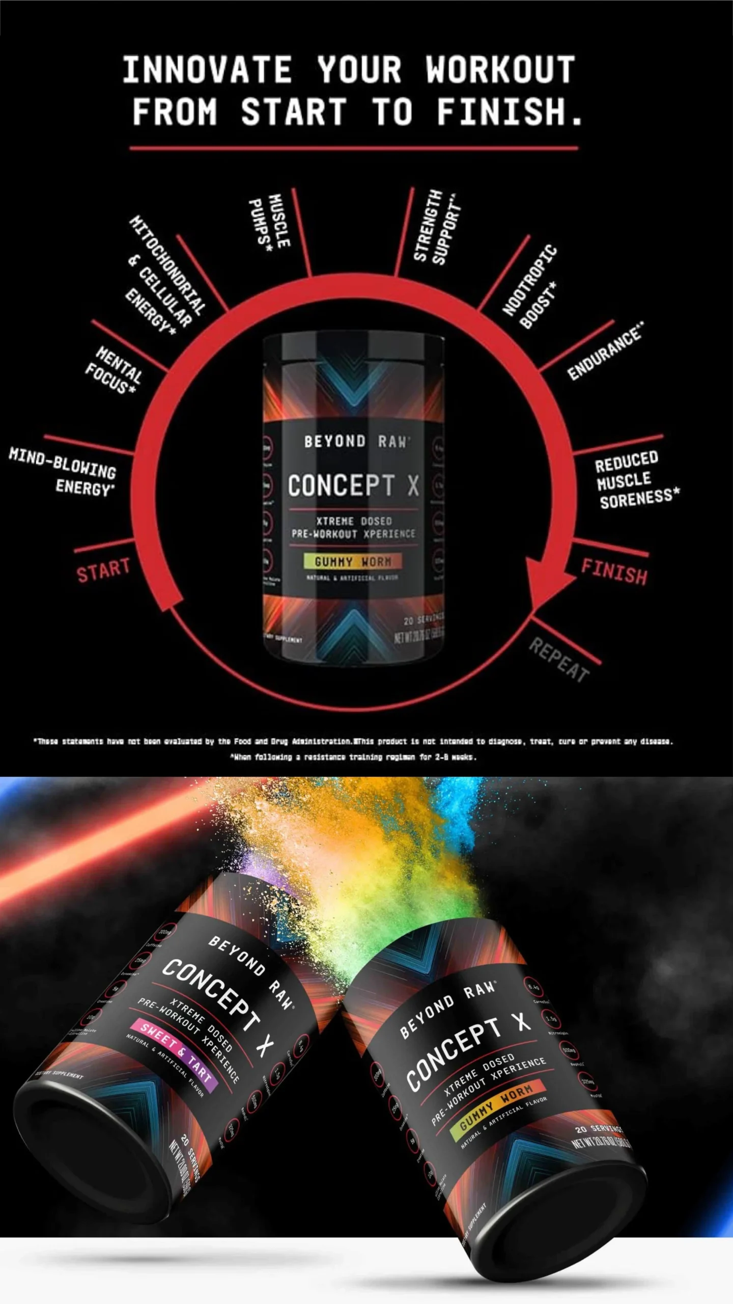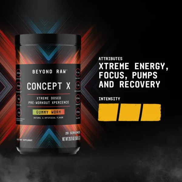 BEYOND RAW® Concept X شما را برای عبور از محدودیتهای انرژی، قدرت استقامت و تمرکز میکند. این مکمل پیشرفته، اولین در نوع خود، با هدف حمایت از تمرینات سخت و کاهش دردهای عدلانی طراحی شده است.