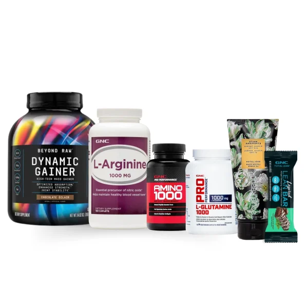 این پکیج کامل برای ورزشکاران و افرادی طراحی شده است که به دنبال افزایش حجم عضلات، بهبود عملکرد بدنی و حفظ سلامت پوست هستند. محصولات این پکیج شامل موارد زیر است: