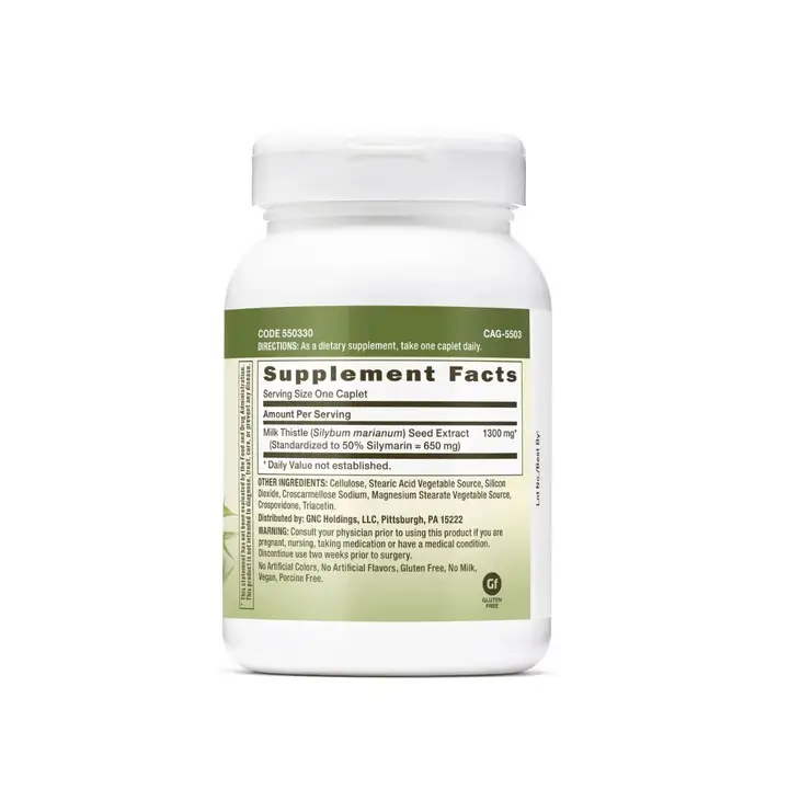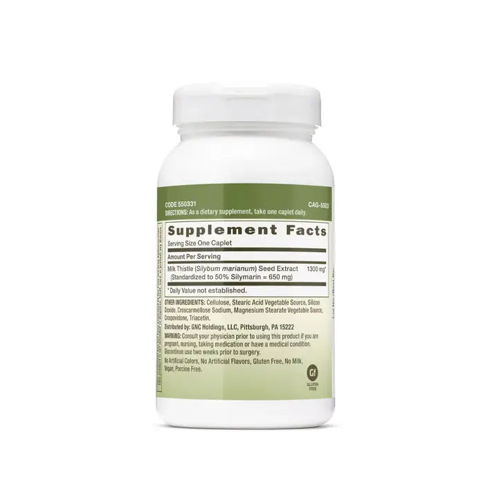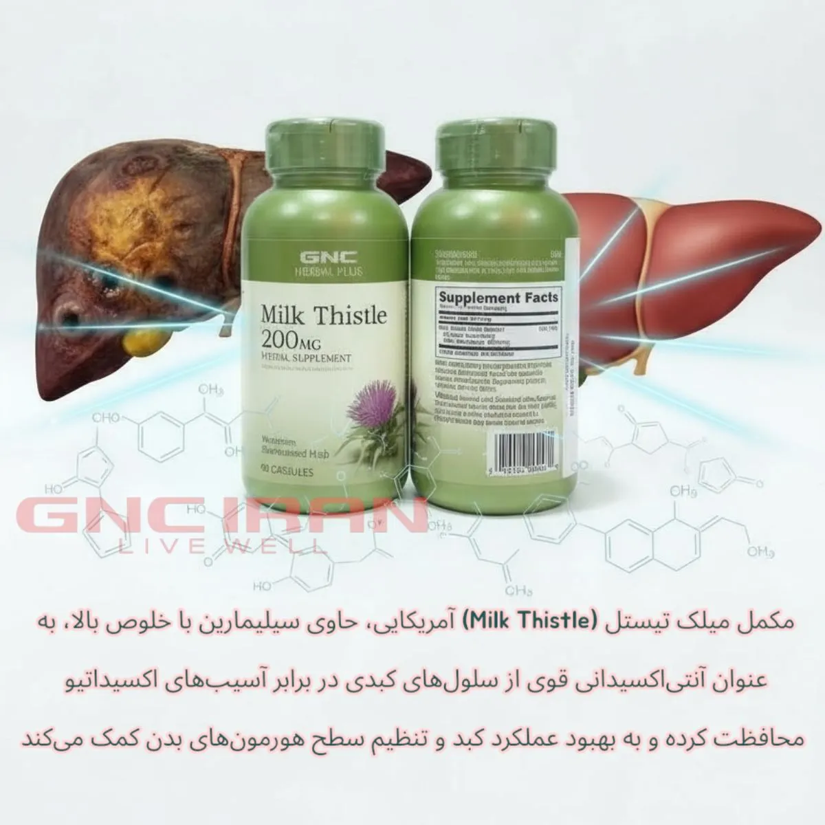 مکمل GNC Milk Thistle حاوی ۲۰۰ میلی‌گرم عصاره خالص دانه خار مریم است که به طور تخصصی برای تقویت عملکرد کبد فرموله شده است.
