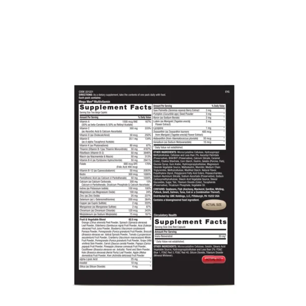 حاوی بیش از ۳۰ ماده مغذی تخصصی، از جمله مولتیویتامین و آنتیاکسیدانهای قوی، که برای سلامت مردان مورد آزمایش و بررسی قرار گرفتهاند.