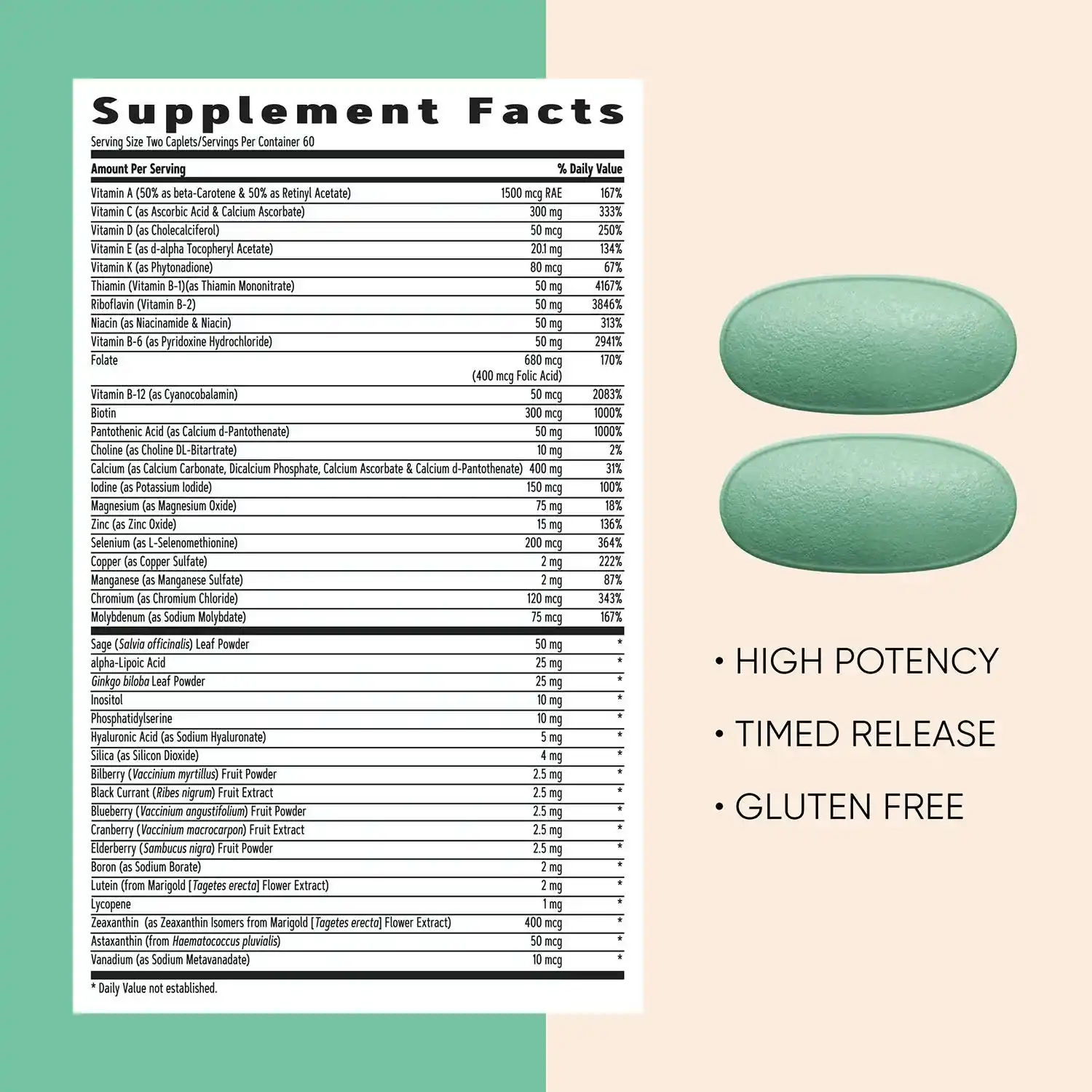 مولتیویتامین زنانه GNC Women’s 50 Plus یک مکمل کامل برای بانوان بالای ۵۰ سال است که با ترکیبی از ویتامینها، مواد معدنی و عصارههای گیاهی به تقویت سلامت استخوانها، پوست، ذهن و سیستم ایمنی کمک میکند. این محصول فاقد گلوتن و لبنیات است و برای خانمهایی با رژیم یا حساسیت غذایی مناسب میباشد. همچنین در مقابله با پیری سلولی و استرس اکسیداتیو مؤثر است.
