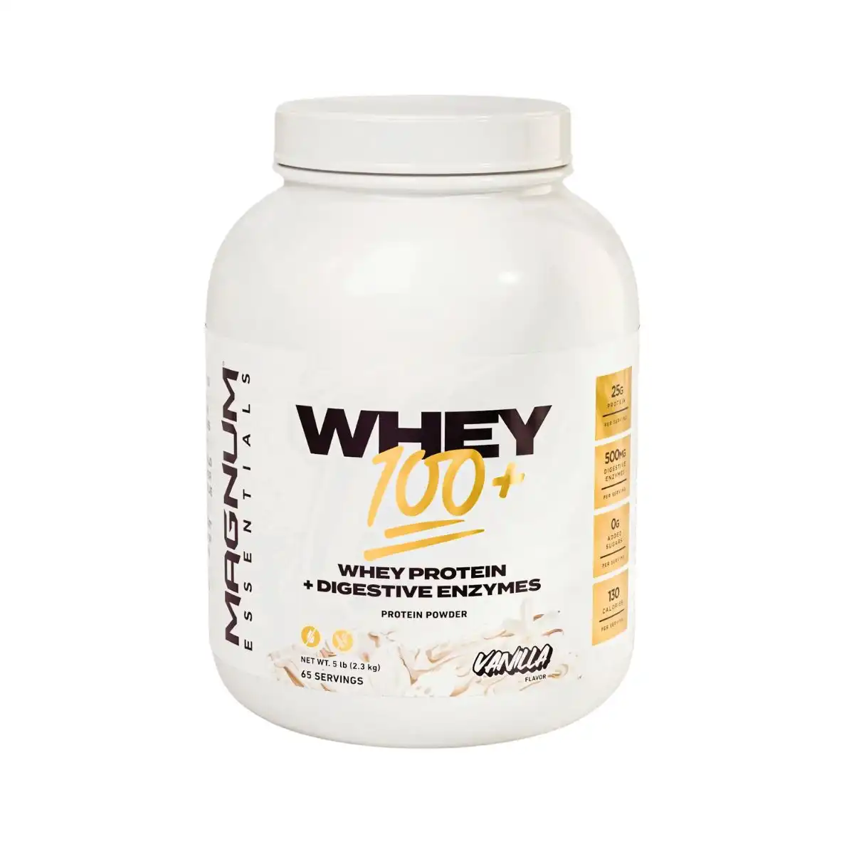 پروتئین وی ۱۰۰+ مگنوم یک مکمل پروتئینی باکیفیت و با هضم سریع است که در هر وعده حدود ۲۵ گرم پروتئین خالص فراهم میکند. این محصول به رشد عضلات بدون چربی، بازسازی بافتهای عضلانی و بهبود سریعتر ریکاوری پس از تمرین کمک میکند.