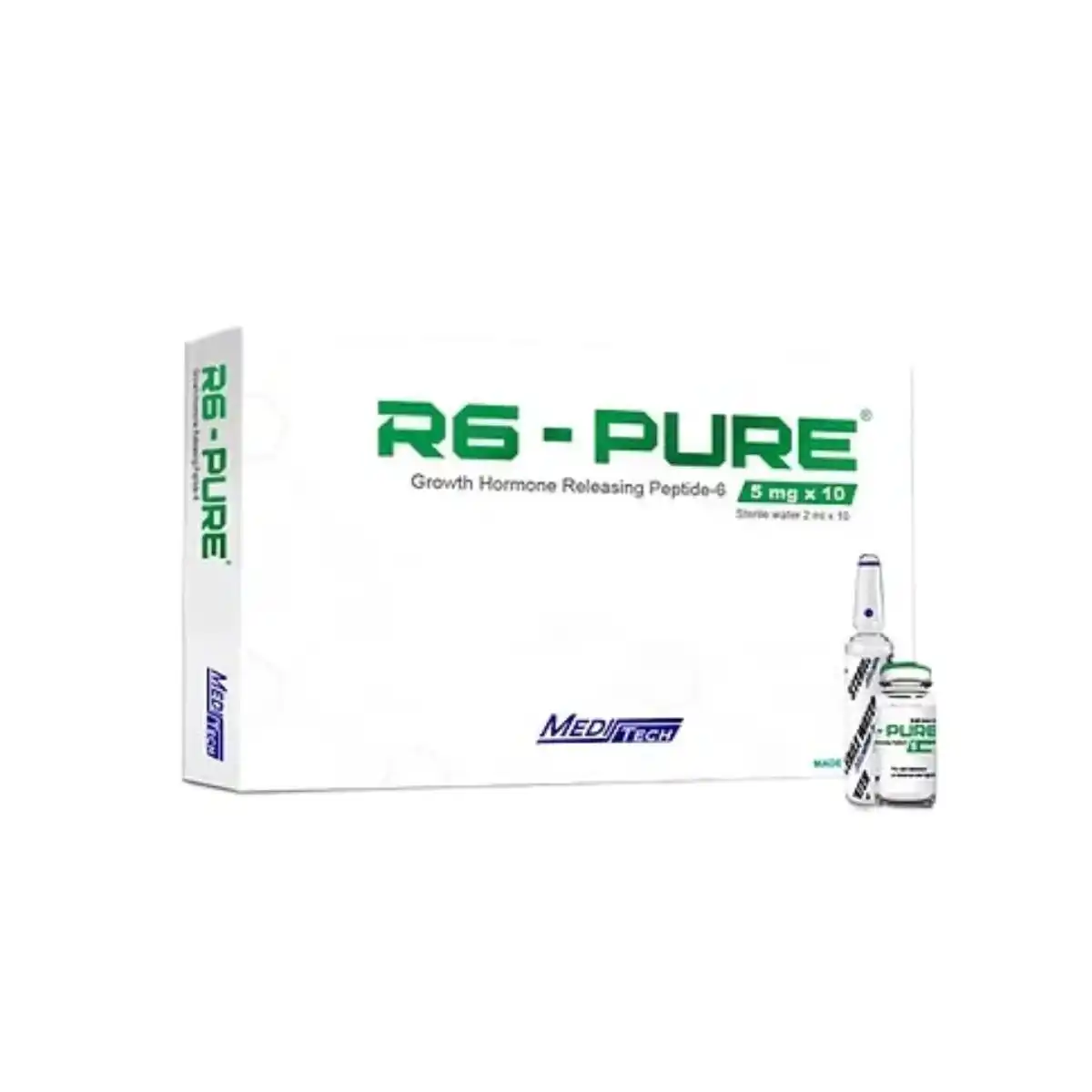 R6-PURE یک پپتید آزادکننده هورمون رشد (GHRP-6) با خلوص بالا است که با تحریک تولید طبیعی هورمون رشد، به افزایش حجم عضلات خشک، کاهش چربی، تسریع ریکاوری و بهبود سلامت مفاصل کمک میکند. این محصول عمدتاً برای بدنسازان، ورزشکاران و افراد فعال طراحی شده که به دنبال ارتقای عملکرد و ترکیب بدنی هستند. دوز مصرفی معمول آن ۲۰۰ تا ۴۰۰ میکروگرم و دو بار در روز است. هر بسته حاوی 10 ویال 5 میلیگرمی میباشد.