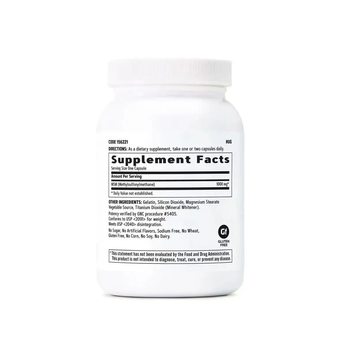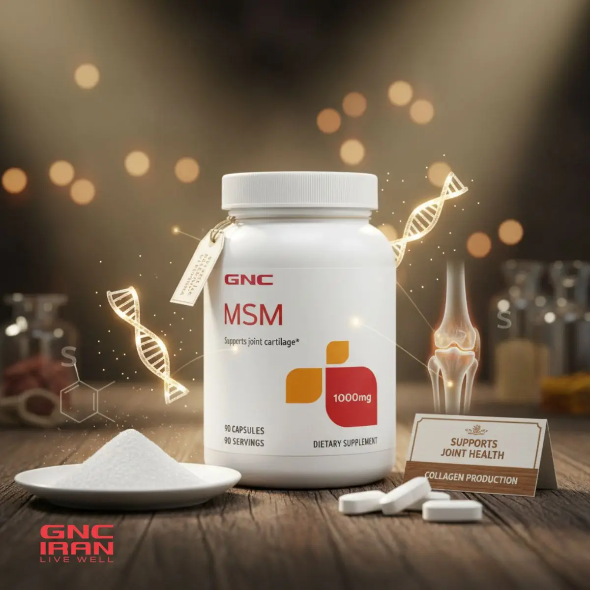 GNC MSM 1000mg مکملی تخصصی برای حمایت از سلامت مفاصل و غضروف‌هاست. ترکیب مؤثر آن، متیل‌سولفونیل‌متان (MSM)، نوعی ترکیب طبیعی حاوی گوگرد است که در بدن انسان، حیوانات و گیاهان وجود دارد. MSM به‌عنوان منبع مهم گوگرد، به سنتز کلاژن و تقویت ساختار غضروف‌ها کمک کرده و نقش مؤثری در حفظ سلامت و عملکرد صحیح مفاصل ایفا می‌کند.