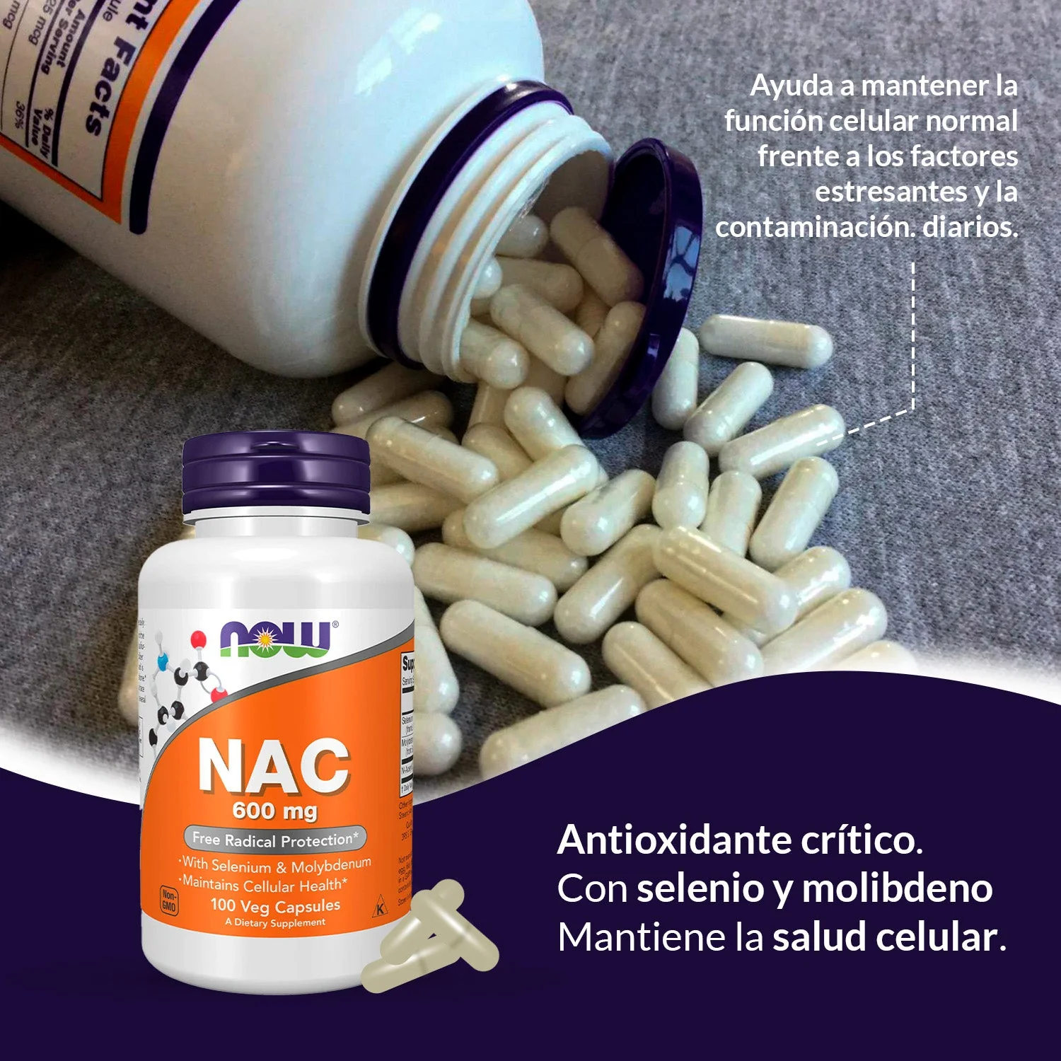 کپسول NAC 600 میلیگرمی Now Foods با ترکیب ان-استیل سیستئین، سلنیوم و مولیبدن از سلامت سلولی، فعالیت آنتیاکسیدانی و فرآیندهای سمزدایی بدن پشتیبانی میکند. این مکمل برای افرادی مناسب است که بهدنبال تقویت سیستم دفاعی بدن، حمایت از عملکرد کبد و کلیه و افزایش سطح گلوتاتیون هستند. مصرف آن برای بزرگسالان، ورزشکاران و افرادی که در معرض آلودگیهای محیطی یا استرس اکسیداتیو هستند، توصیه میشود.