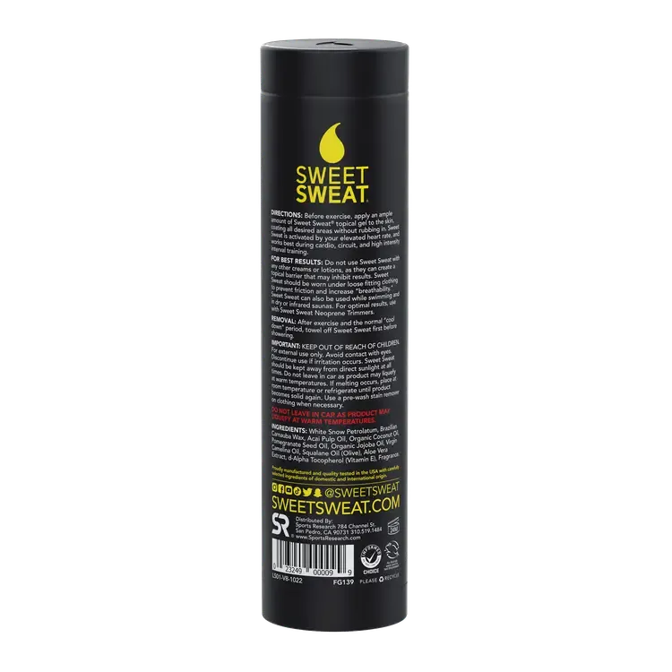 اگر بهدنبال نتایج بهتر و سریعتر از تمرینات خود هستید، Sweet Sweat همراهی ایدهآل برای شماست. این ژل موضعی از برند معتبر Sports Research، با فرمولی خاص بهگونهای طراحی شده که گردش خون را در نواحی مورد نظر افزایش داده و تعریق را در حین تمرینات تقویت کند.