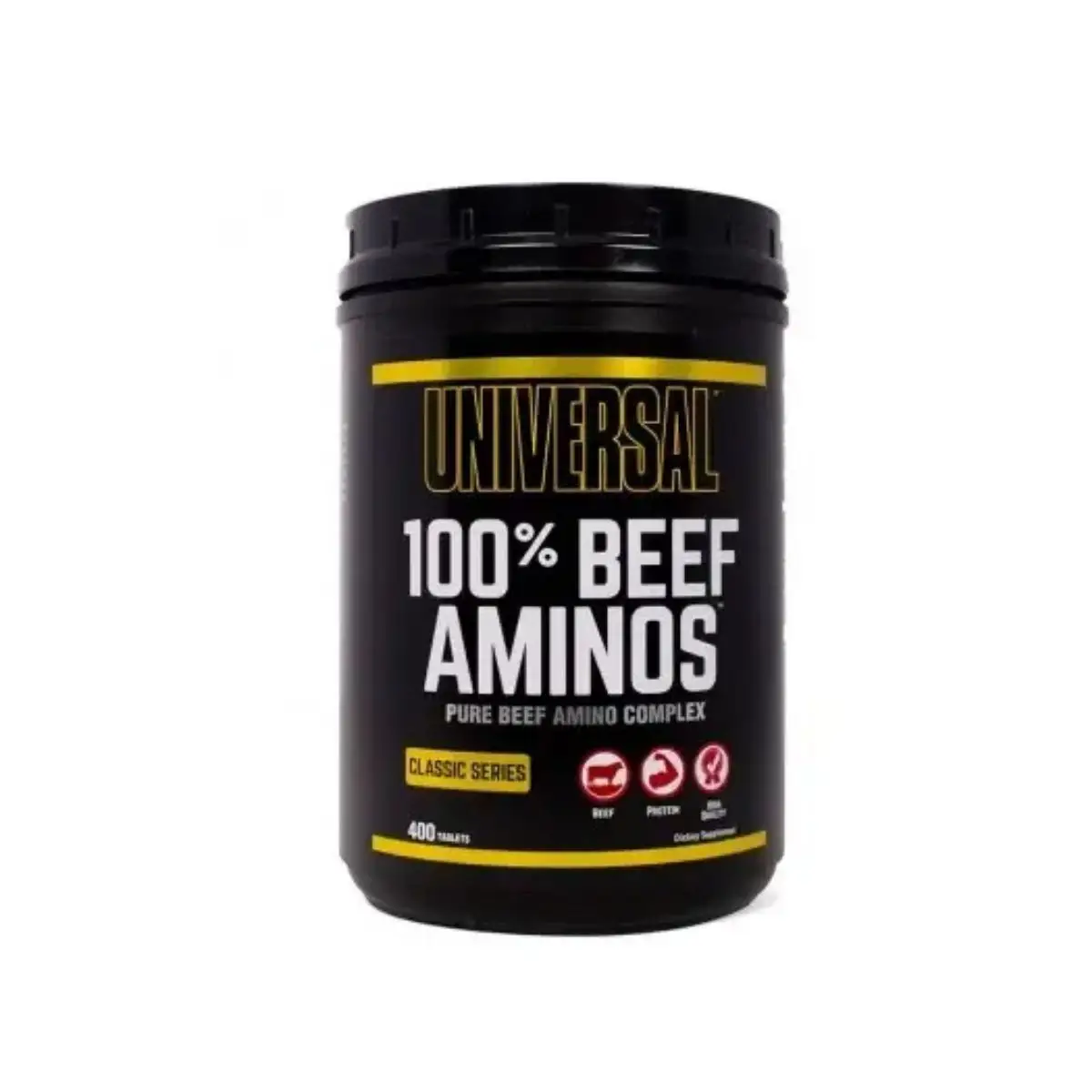 آمینو بیف (گوشت گاو 100٪) برند یونیورسال مکملی مبتنی بر اسیدهای آمینه خالص استخراج‌شده از پروتئین و جگر گاو است که به افزایش سنتز پروتئین، رشد توده عضلانی و ریکاوری سریع‌تر کمک می‌کند. این فرمول با تأمین طیف کامل EAAs و BCAAs، به بدن در دوره‌های تمرینی سنگین و افزایش حجم خشک پشتیبانی می‌دهد. برای بدنسازان، ورزشکاران قدرتی و افرادی که به‌دنبال منبع پروتئین کم‌چرب و جذب‌بالا هستند گزینه‌ای ایده‌آل است.