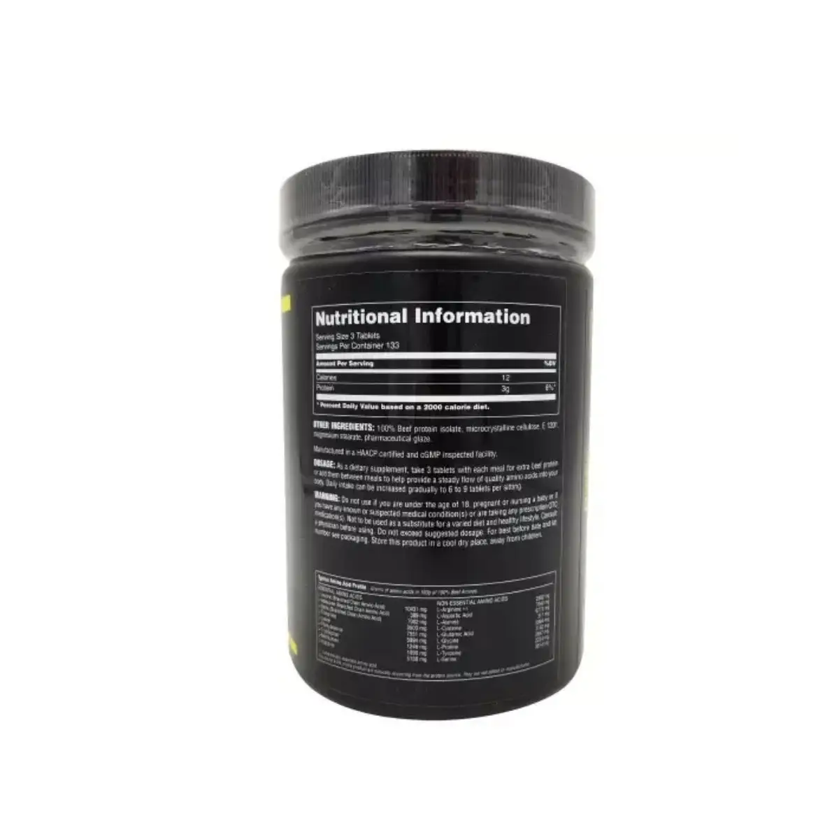 ۱۰۰٪ بیف آمینو مجموعه‌ای قدرتمند از آمینواسیدهای خالص استخراج‌شده از پروتئین ایزوله و جگر گاو آرژانتینی است. این مکمل با فراهم‌کردن ۱ گرم پروتئین خالص در هر قرص، یک منبع عالی برای تأمین روزانه اسیدهای آمینه ضروری و BCAAهاست و به شما کمک می‌کند بیشترین بهره را از خواص آنابولیک گوشت گاو بدون چربی و کلسترول بالا ببرید.