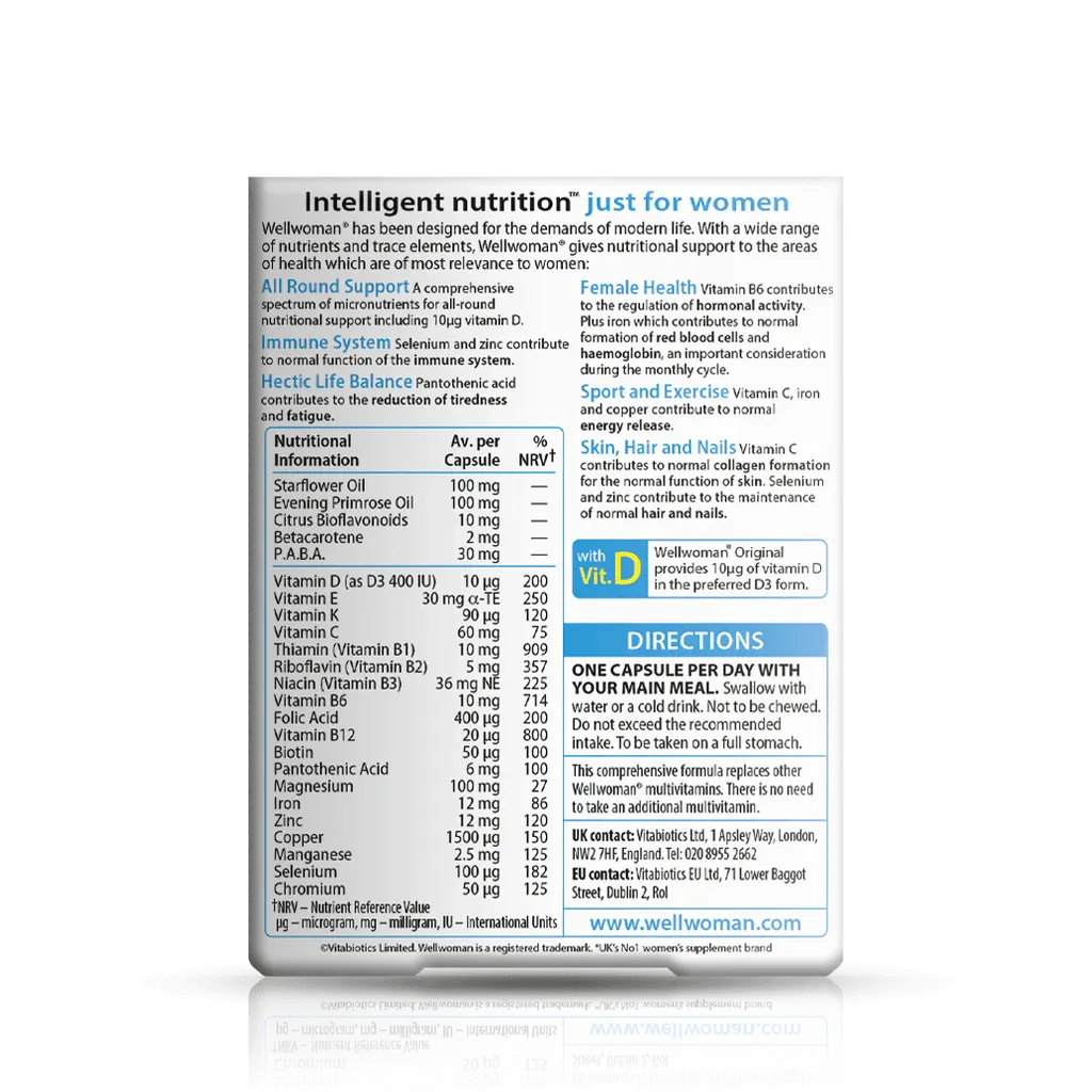 مولتی ویتامین ول وومن اورجینال برای خانمها، با ترکیبی از روغن گل مغربی و روغن گل ستارهای، بهطور خاص برای حمایت از سلامت و شادابی عمومی بانوان طراحی شده است. «ولوومن» همچنین پرفروشترین برند مکمل زنان در بریتانیا محسوب میشود.