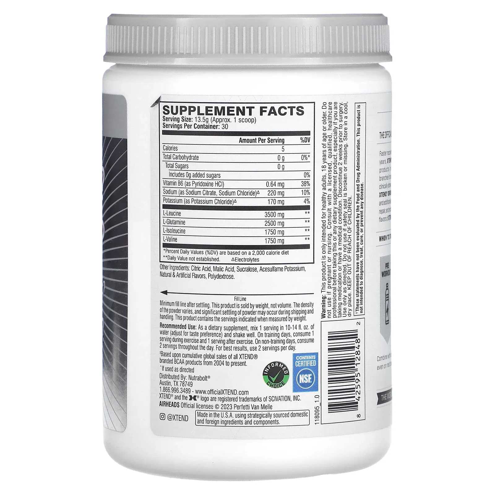 XTEND X AIRHEADS یک مکمل بدون شکر و حاوی ۰.۲۵ اونس BCAA و الکترولیتهای آبرسان است که به ریکاوری عضلات، هیدراتاسیون و افزایش استقامت کمک میکند. این محصول در ۳ طعم خوشمزه آبنباتی عرضه شده و برای ورزشکاران، بدنسازان و افرادی که تمرینات سنگین انجام میدهند ایدهآل است. اگر به دنبال ریکاوری سریعتر و تمرین با شدت بالاتر هستید، این نوشیدنی بهترین انتخاب برای شماست!